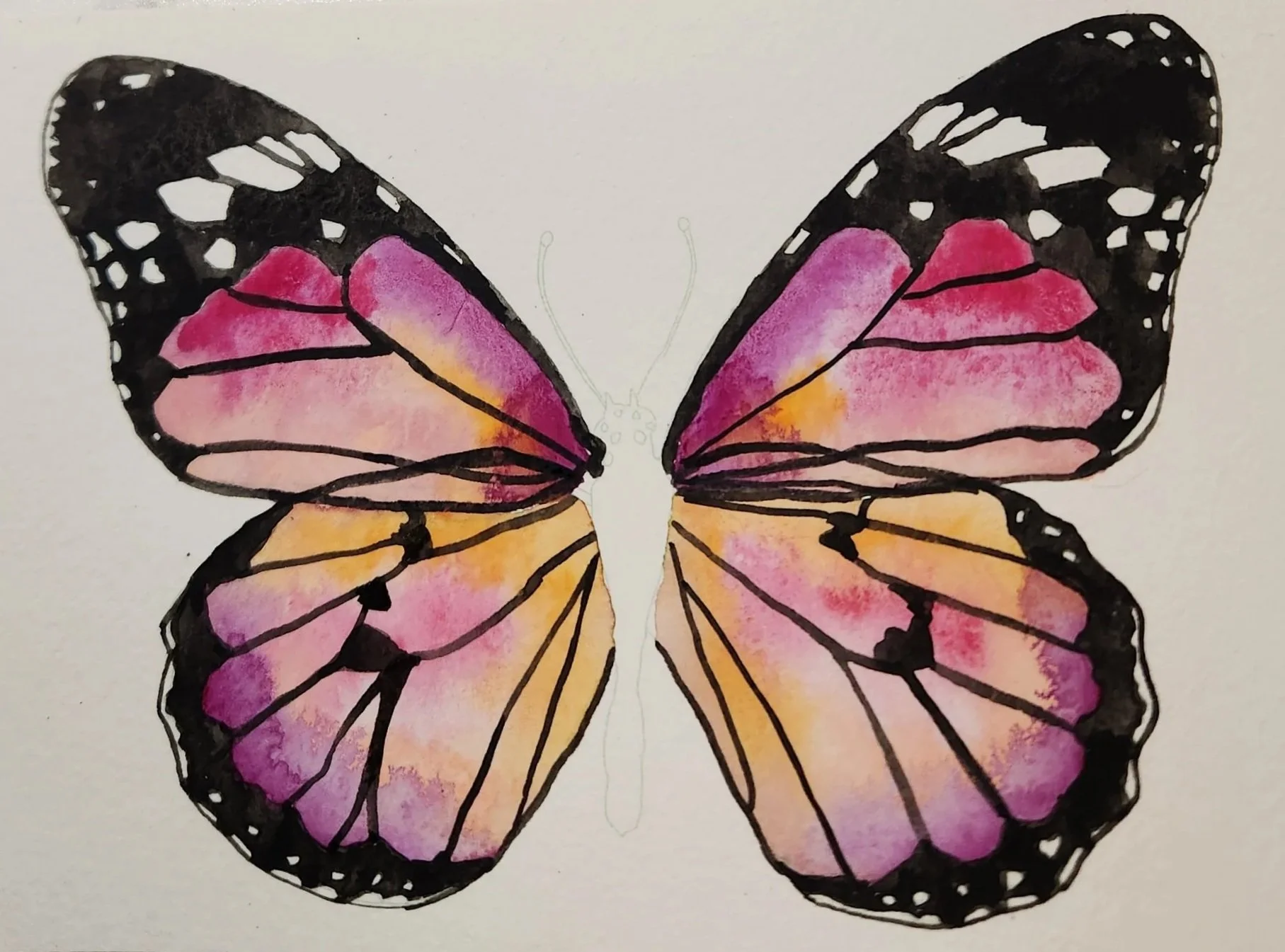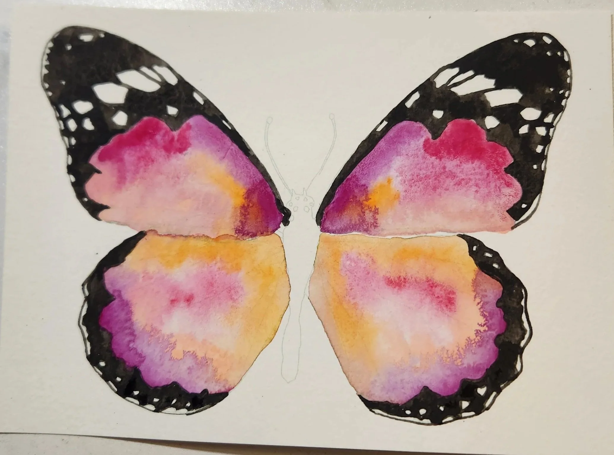 5. Let painting dry completely and ta-da! You now have a beautiful watercolor butterfly painting that you created yourself! And you can even use the leftover colors to paint something completely new, have fun with it!